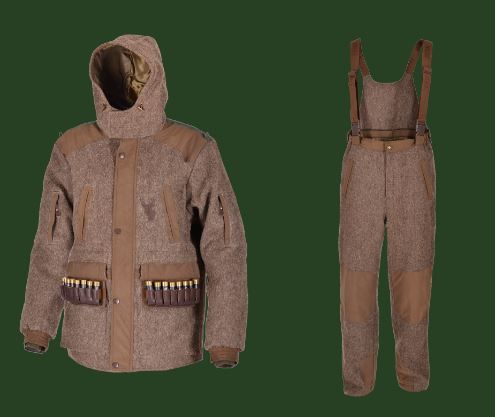 Костюм предназначен для охоты в условиях русской зимы при температуре от -5 до -20°. Куртка утеплена - Alpolux. Удлиненная куртка и брюки с завышенным поясом (полукомбинезон).