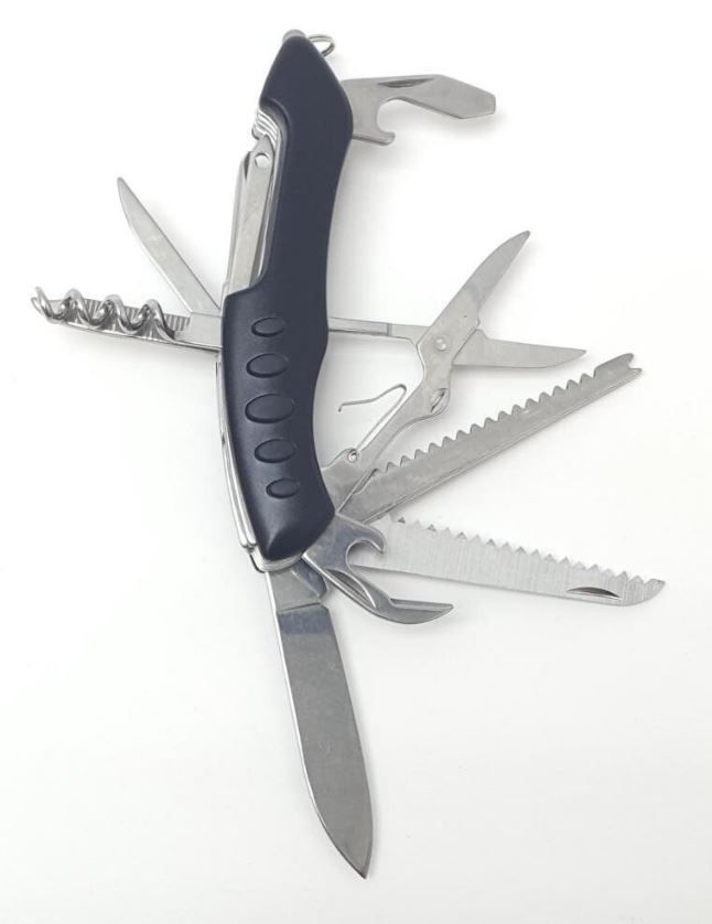 Отвертки-3шт, Нож, Консервный нож, Пила по дереву, Открывашка, Штопор, Напильник